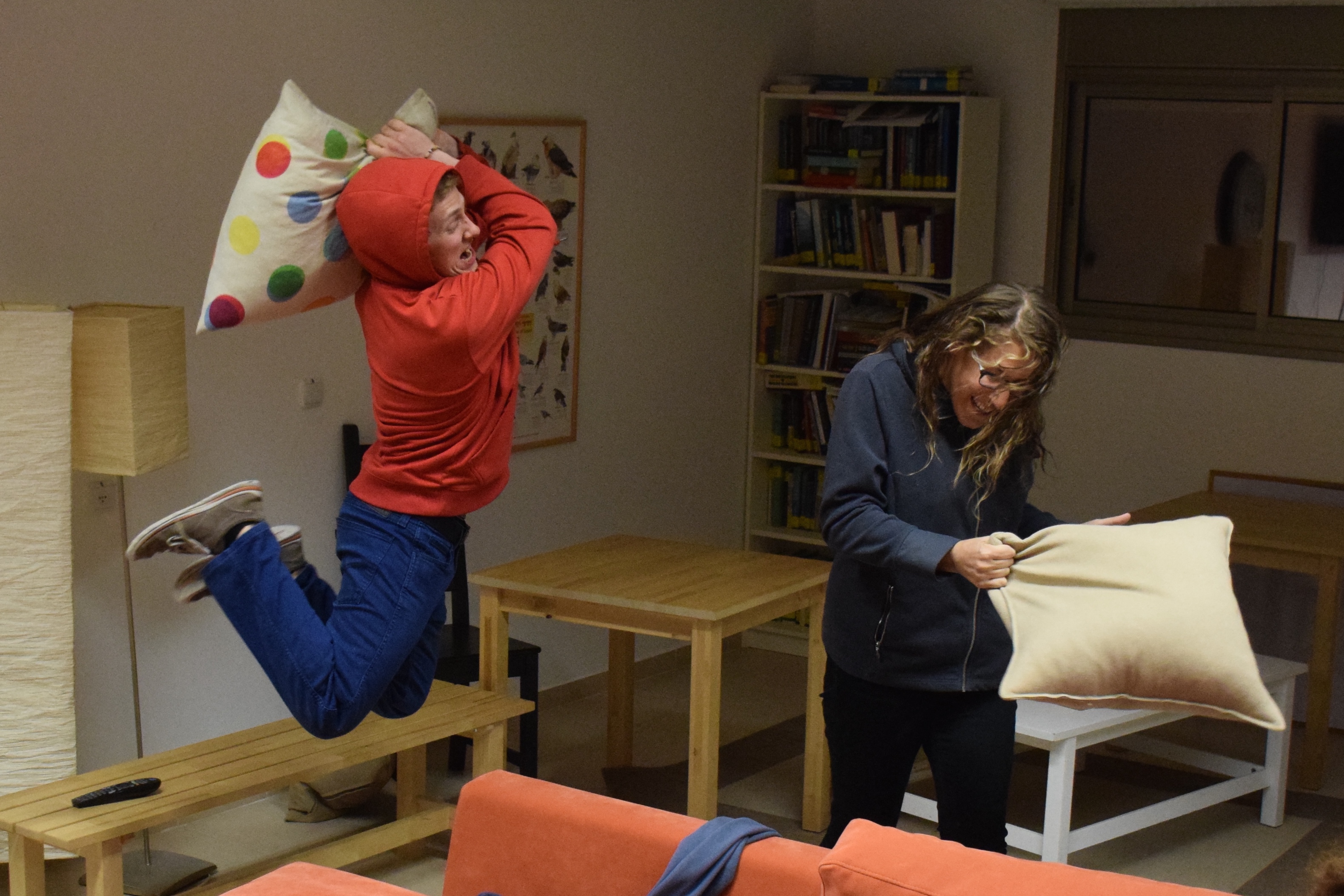 After finals week we had a little goodbye party for two of the students who were leaving early. The student lounge is filled with lots of comfortable pillows and, after a rather stressful week, the party rather predictably devolved into n epic pillow fight. I ran around taking pictures so I was spared the fight and instead got to capture awesome moments like this one.