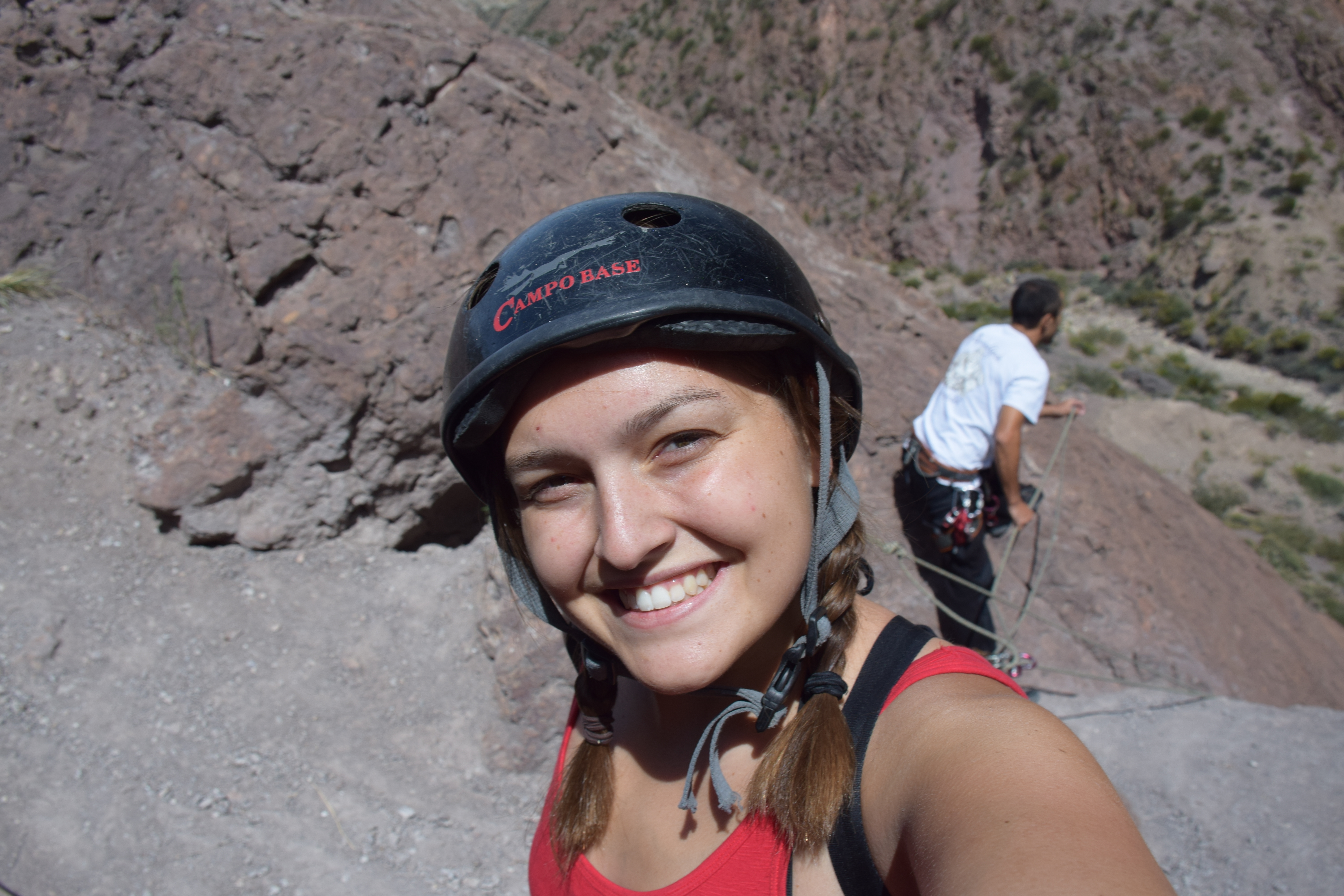 As part of our second day in the mountains, we began with a trek up into the hills, at the end of which we repelled down the mountainside. Our guide was skeptical of our ability to speak Spanish after we didn’t catch the first couple of things he said, so on the hike we asked him about what kind of animals we could expect to see and what kinds of minerals were in the nearby mountains. The mountains have lots of snakes, foxes, rabbits, and guanaco. I have no idea what the minerals were, lots of words I didn’t know. But he did tell me that they get 20 cm (8ish in) of rain every year but that was hard to believe because it certainly felt like we got half that in rain on our last day there.