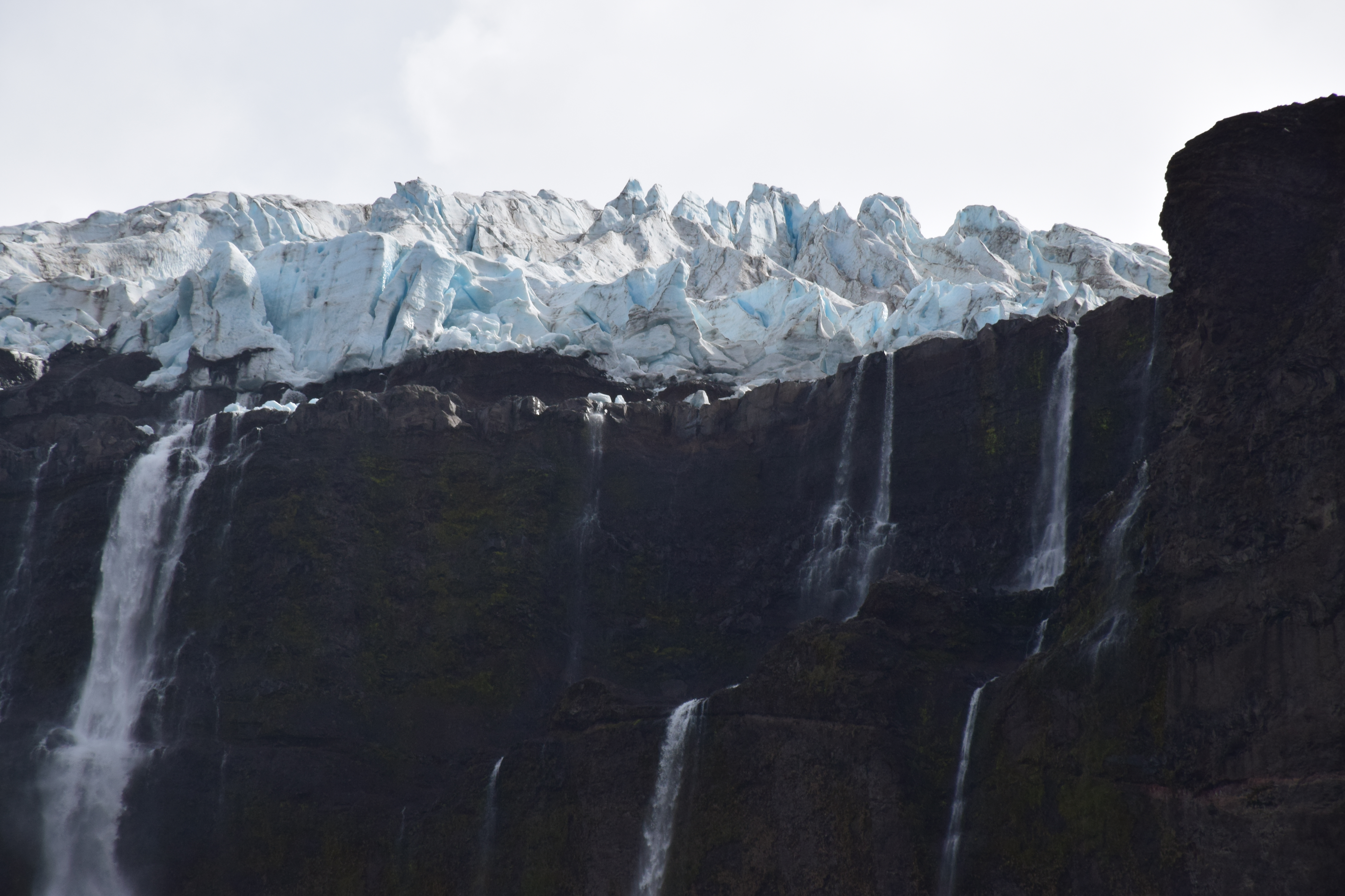 At the top you can see that the runoff for these waterfalls is actually a glacier, which explained the sudden temperature drop as we got closer to the falls.