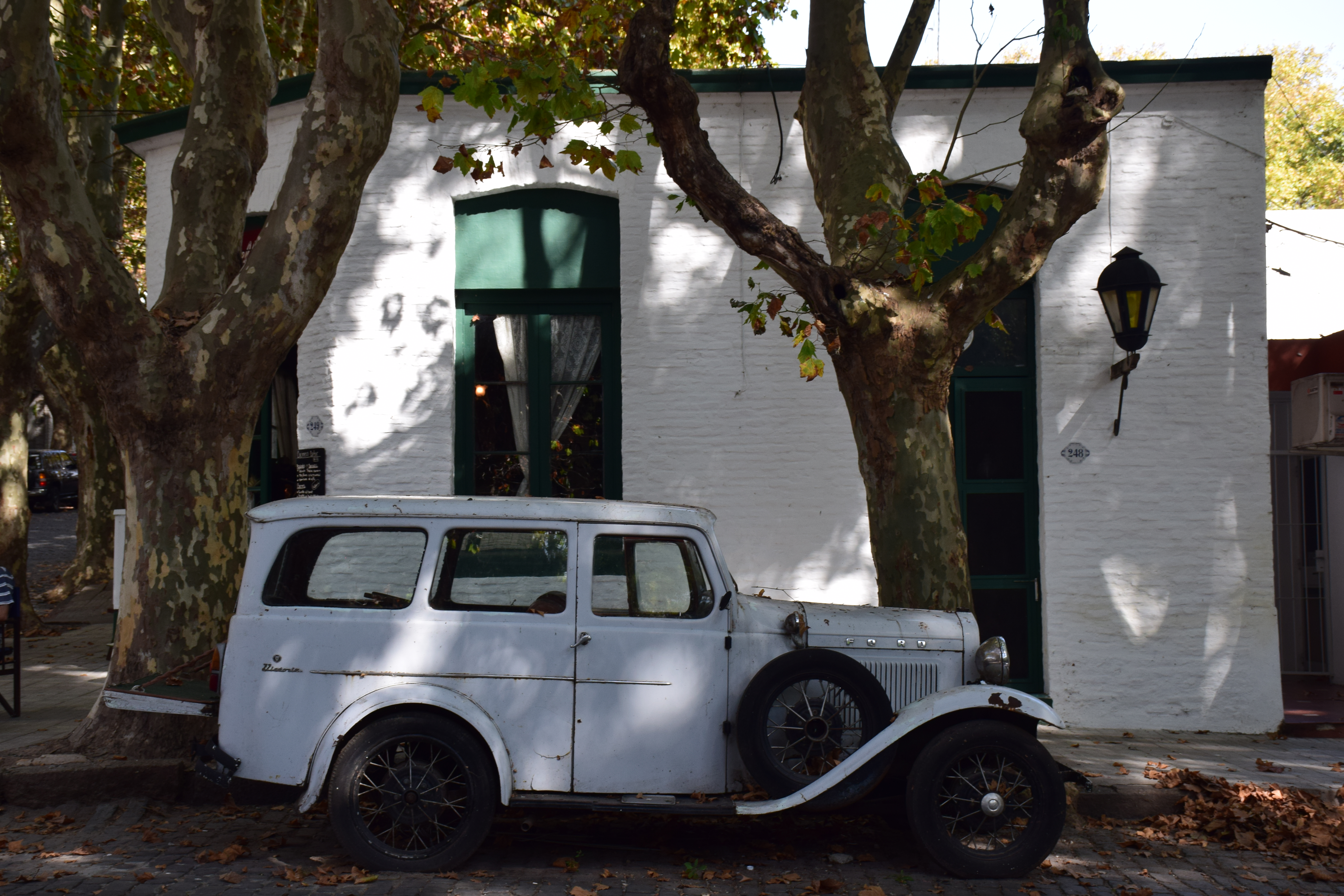 The town itself is a mix of Spanish and Portuguese designed buildings, most of them incredibly old. In the older part of Colonia, there’s even a mix between two types of cobblestones streets. Along with relatively modern cars, older cars line the streets as well, some, like this one, purely for show. This one had the doors open after I walked past it a second time a dog was hanging out in the trunk, but I’ll talk about the dogs later.
