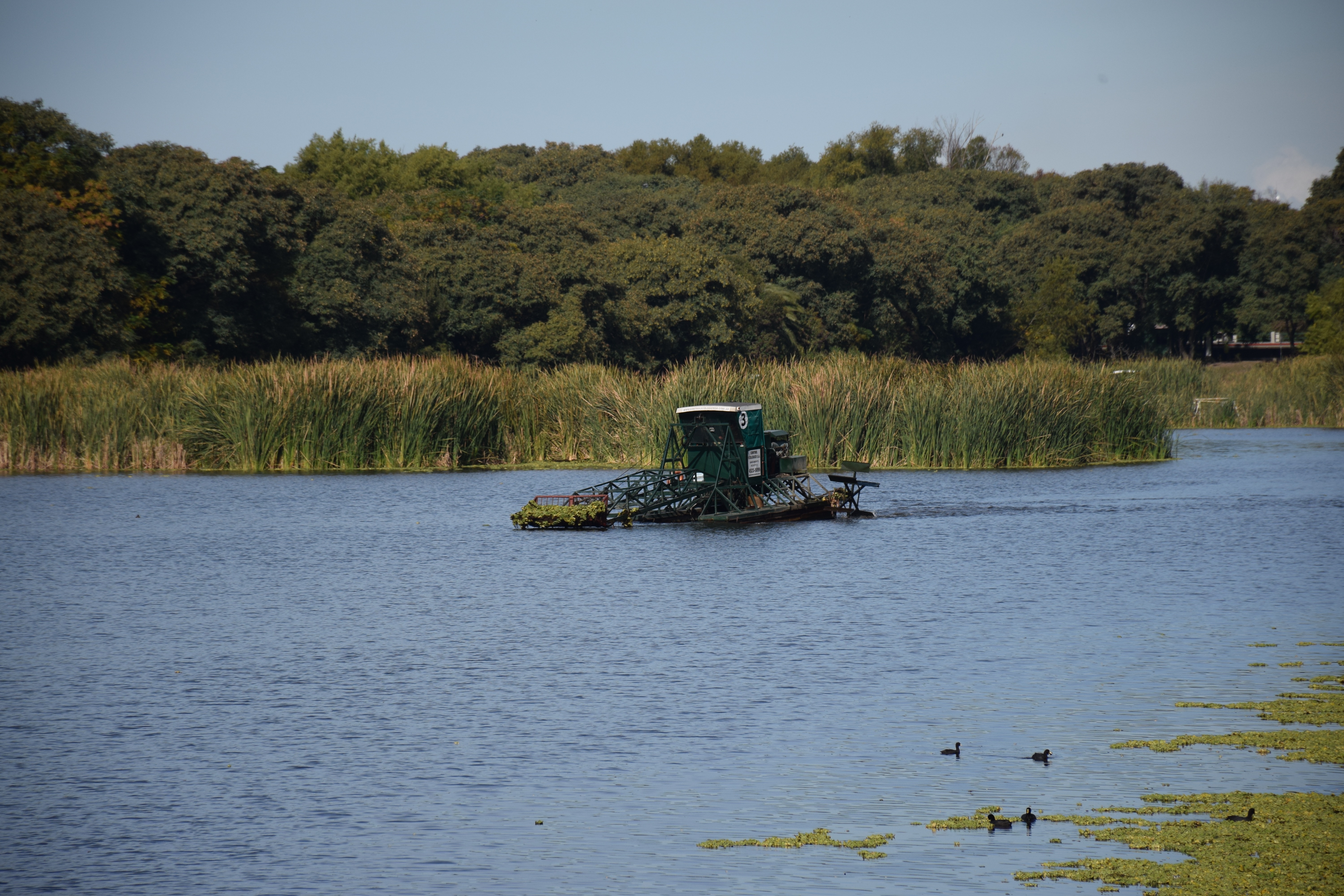 The Nature Reserve has a giant pond, all of the parks around Palermo have normal sized ponds, and ponds need cleaning. So, to clean these ponds, they have these great boats with nets of sorts on the front to pick up the pond scum. The smart birds will hang out in the front and eat out of the easy pickings, no one was doing that on this boat, but I have seen it in the past.