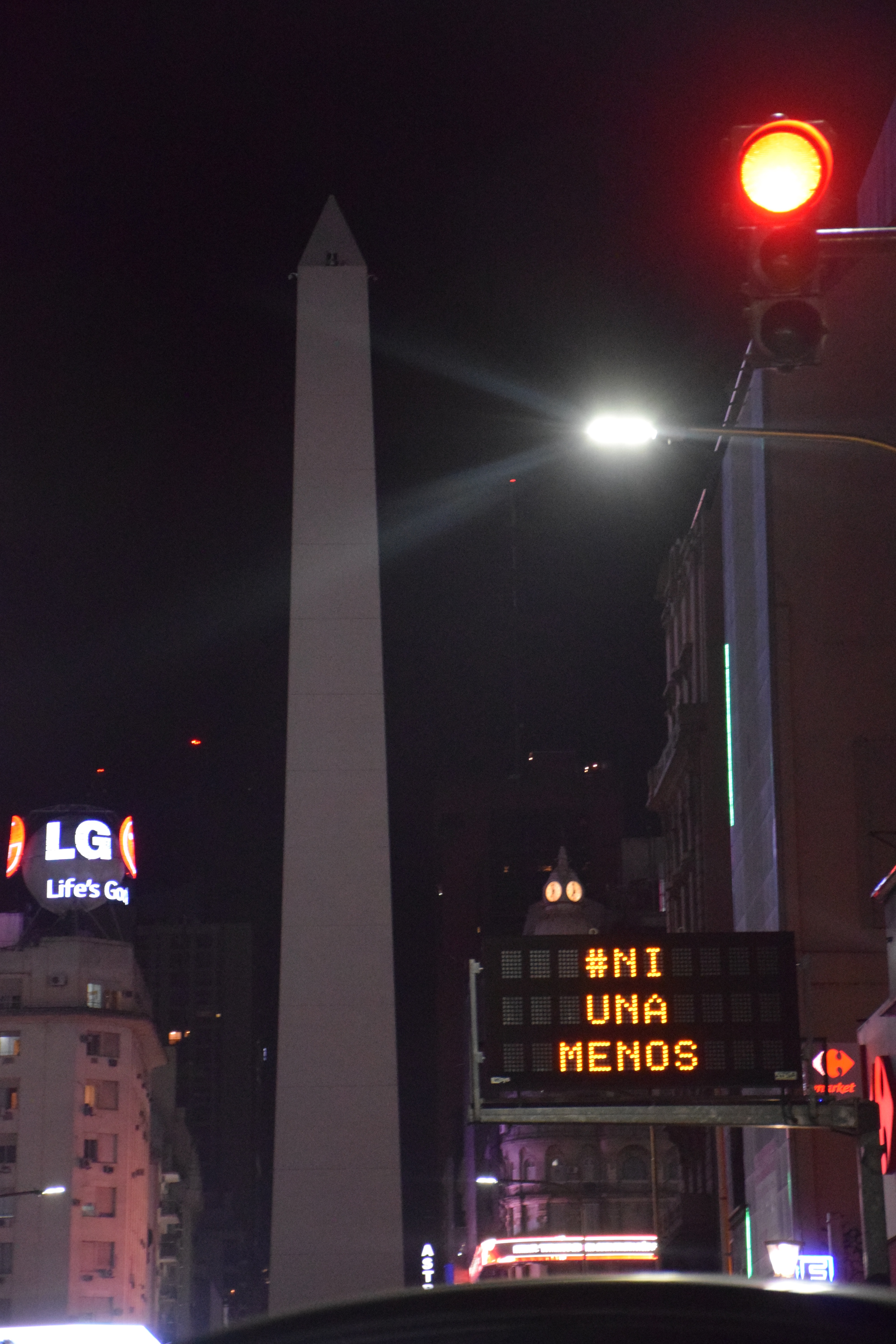 The Californian in me can’t resist a good march, so I was excited to hear about a march coming up where folks would be demonstrating against violence against women. The only problem was that I had class during the march. Our teacher was fine with us hurrying through our presentations though, as she understood how important the march was, so we finished class half an hour early and then raced home to drop off bags before attempting to get to the march. For some reason all public transportation was incredibly slow so we ended up taking a combinations of subways, busses and just walking to get us there as fast as we could. The normally twenty minute trip stretched on but we made it to the end of the march. There were still folks marching down the street, police hadn’t bothered to close down the streets so cars intermingled with the marchers, and people holding signs occasionally passed. We joined the tail of the march, heading toward the obelisk in the center of town and passed a street sign flashing the hashtag for the march. I assume they’re going for the #notonemore campaign, though it literally translates to #notonefewer.