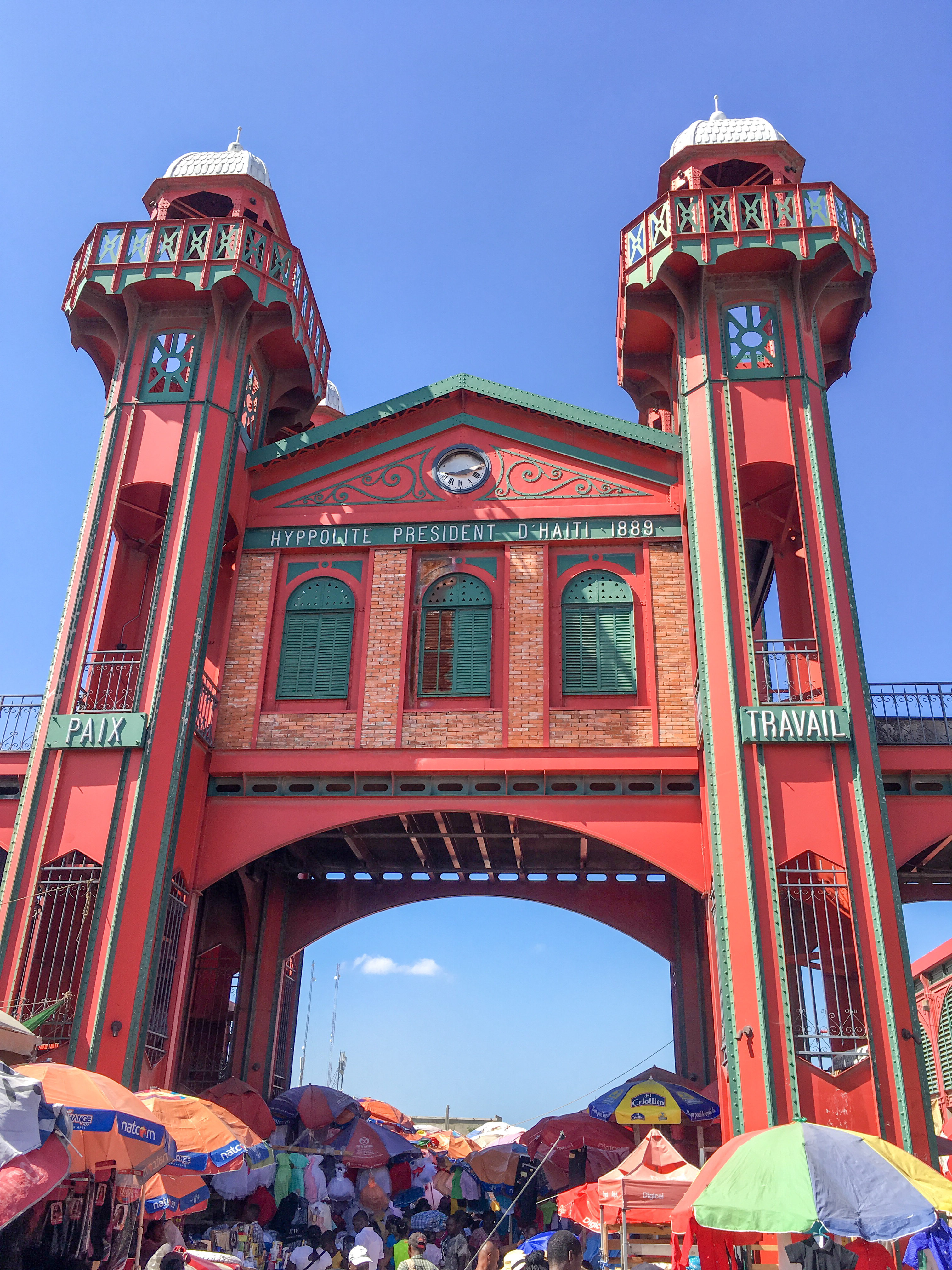 After this we got into a taxi that Claude had stay with us for the day and we headed to the Iron Market. The Iron Market is a big covered market selling everything one might need. Claude explained that there was a tourist side of the market with artwork and trinkets, and a Haitian side with household goods but that that side was temporarily closed while they did repairs to the awning. He took us into the tourist side and worked hard to stop the shopkeepers from overwhelming us and pushing their wares on us. Eventually I found a key chain I liked and Claude helped facilitate the purchase since no one in the market spoke English. Then we continued onward.