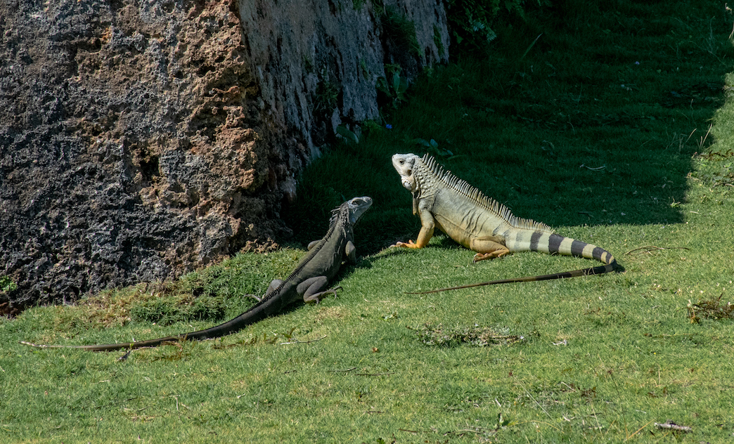 Taking a walk around the outside grounds (okay I’ll admit it, we were looking for the exit but couldn’t find it) we came across an iguana with his lady friend. Aaron snuck up on them to take some pictures.
