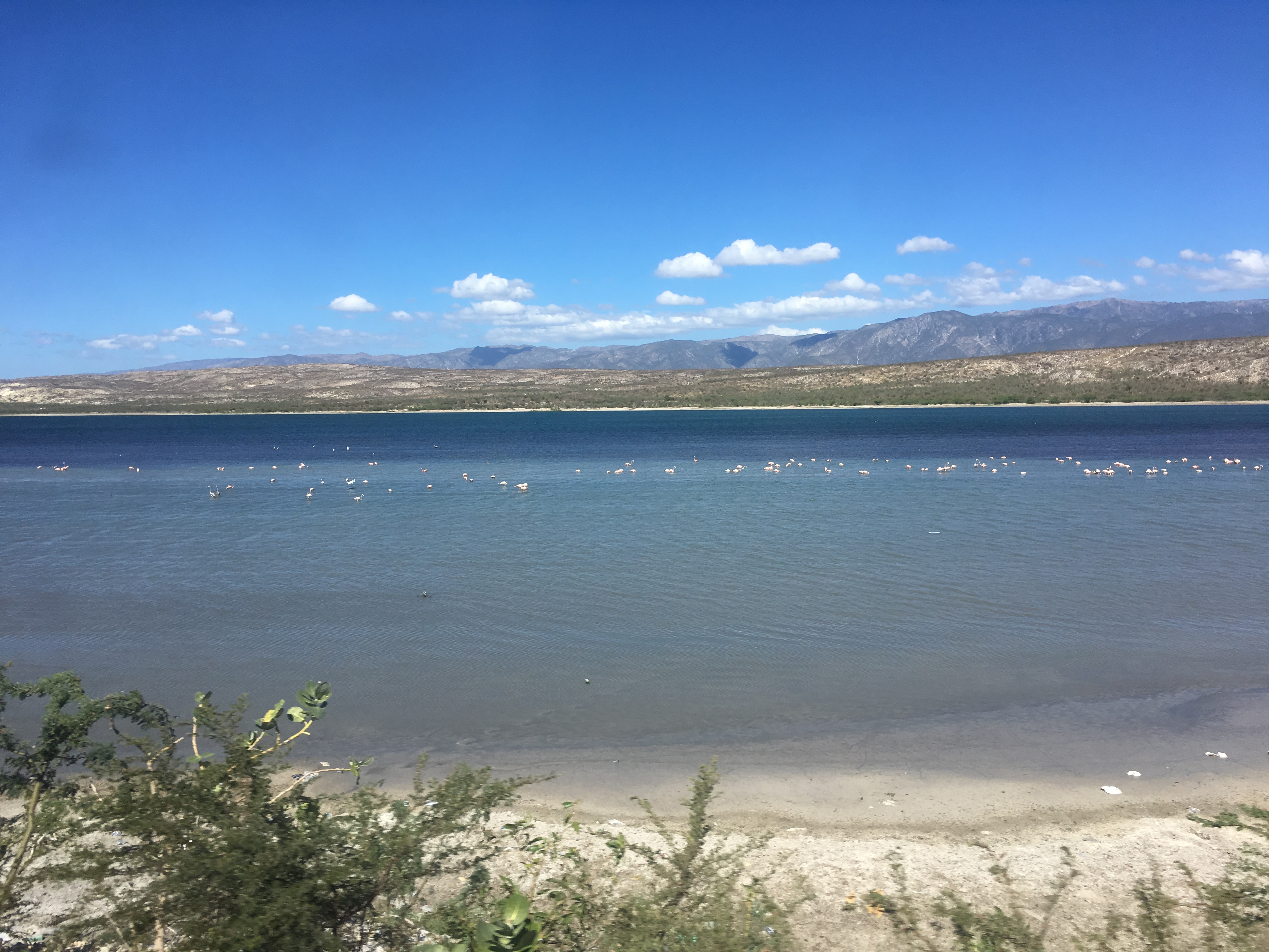 The border crossing is located on a huge lake which we were excited to see was home to some flamingos!