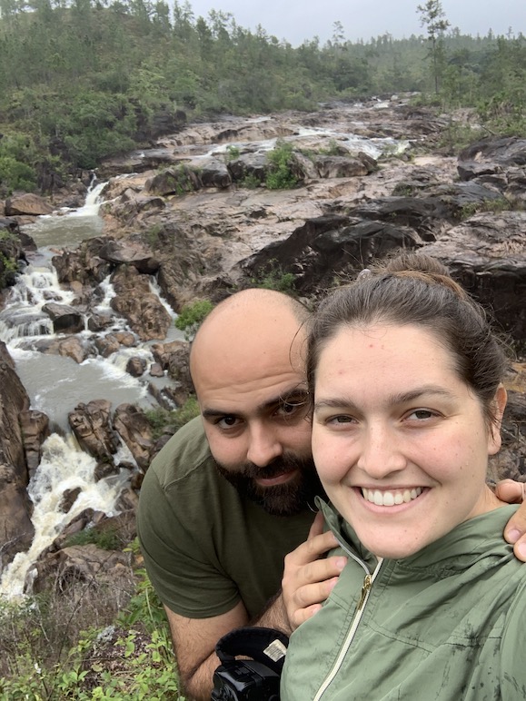 Getting to the cave required climbing down to a small pool that was a beautiful aquamarine blue and then swimming under the hanging vines into the cave. One woman in our group of eight couldn’t swim so Carlos had her lie back into her life jacket and he tugged her into the cave. Once we were all congregated on a rock just inside the cave, Carlos turned each of our headlamps on so that we’d be able to see and told us that now we’d be walking 800 meters (about half a mile) into the cave, in water. Talk about flashbacks to hiking the Narrows in Zion National Park! Aaron and I felt very well prepared for this part of the hike. And then we realized that while the flow rate of the water was much lower, the technical aspect of hiking this cave was much more complicated. We were scaling up rapids and squeezing through slots in between rocks all while the water fluctuated from being about a foot deep to being so deep we had to swim against the current. One memorable area near the beginning required all of us to navigated a slot between two rocks, with rocks overhead (clearly the result of a cave-in) while in water up to our necks, that occasionally got deep enough that we found ourselves floating along on our life jackets. At the end of the slot, the rock had a piece of it jutting out towards the rock across from it and our guide talked each person through navigating that hurdle where it was only wide enough for their neck to fit in the gap. Periodically Carlos would stop and pull out his super bright flashlight and light up the walls so we could see the gorgeous stalactites and stalagmites that were growing there. He explained to us that the white we saw was calcium deposits, the black magnesium, the brown something else, and the black with brown stains around it was guano – bat poop! He pointed out the most impressive accordion formations and at one of them, with a stern warning that he should be the only one who tried this and that it was only okay because he was using his knuckles which don’t have as much oil on them, he tapped out a tune on the stalactite, explaining that they were porous so they had good acoustics and that’s why they made that sound when tapped. At one point, as a group passed us going the other way, Carlos brought us to the side so we could accommodate them and warned us not to touch the wall on our right. Two steps later I lost my balance and felt Aaron grab my life jacket and pull my hand off the very wall he’d warned us not to touch! Dang it’s hard to go against instincts!