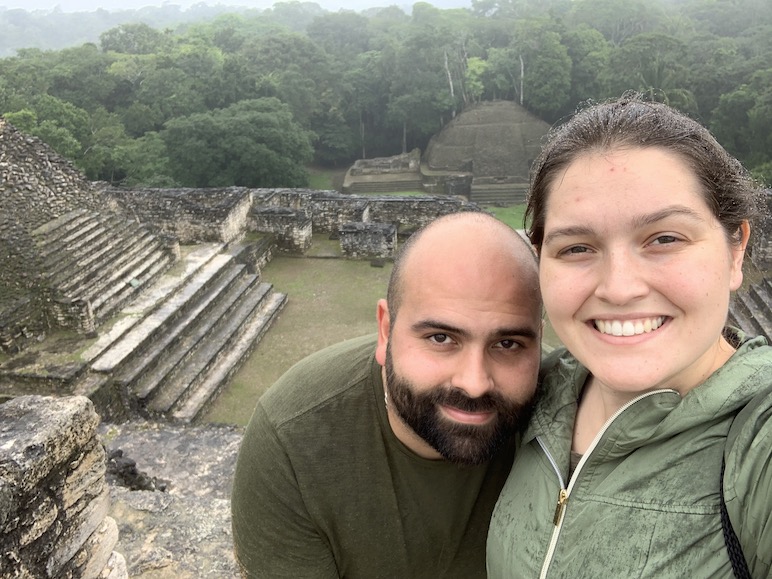 Upon entering Caracol, the first ruin you see is the Sky Palace (Caana). It’s the tallest Mayan Ruin in Belize and it’s fully excavated. With the thick rainforest around it, it was hidden from view until we rounded the corner and then the whole pyramid rose above us. We were both floored by it and immediately climbed to the top.