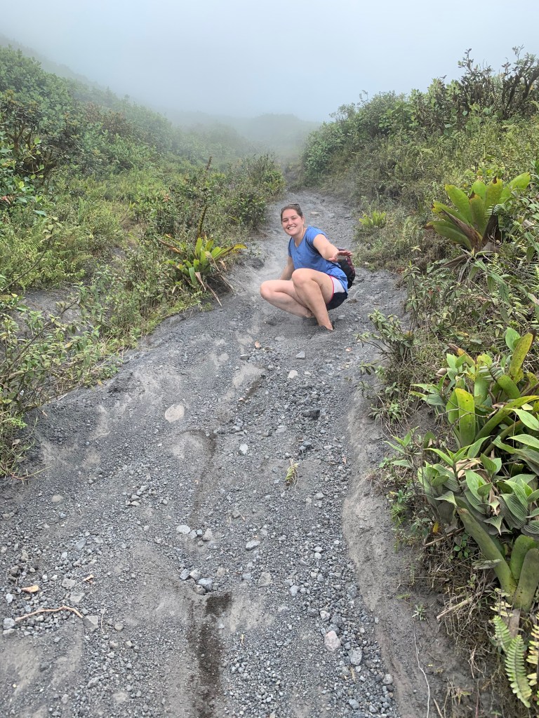 Instantly the terrain changed, whereas before we were walking in a forest-like atmosphere that verged on the biome of a rainforest occasionally (but felt too dry to really be a tropical rainforest) we were now walked down a path that truly felt like the rainforest. Clearly this was an outcropping of the volcano that daily felt the full effects of being encased in a cloud. The trees dripped on us, the plants got larger, and the route became very slippery. I had lots of fun using some branches as a monkey would to swing down to the step below, until I was betrayed by an extra slippery branch and got my leg caught in a root as I fell and had the very real fear that this could be the moment that I simultaneously dislocated my shoulder and tore my left ACL. Luckily nether fate passed, and I made it through with a long, shallow scrape on my leg and a slightly sore shoulder (but it’s been sore for weeks from too much typing at work so that wasn’t anything new).