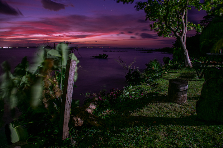Decisions made, deposits paid, rental agreements signed, Elmer helped us load up the bike with our bags and we sped off to the AirBnB that would be our home for the next four nights. We arrived to find the kind of luxury cabaña that you would expect in an upscale area in Hawaii or the Maldives. Located on the shore of the lake, the cabaña was on ten foot high stilts. A bed was in the upper portion along with a fan and some outlets for our phones. Underneath it were hammocks hanging from the legs, a beautiful view of the lake, and a large table that seated four people with four home-made chairs surrounding it. Everything looked like it was made with local trees that were cut down on the property, it was an amazing space and the property was excellent as well. With an outdoor composting toilet, a shower that strongly reminded me of the accommodations we would be staying at in just a week and a half when we went to La Finca Siempre Verde in Costa Rica, a restaurant run by our host’s family, and private beach access, there wasn’t much else we could wish for. Before we left to find dinner, we asked our hosts for the WiFi password just in case we came back and they weren’t around and then we went into to town to find food and snacks for the hike the next day and dinner.
