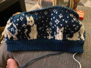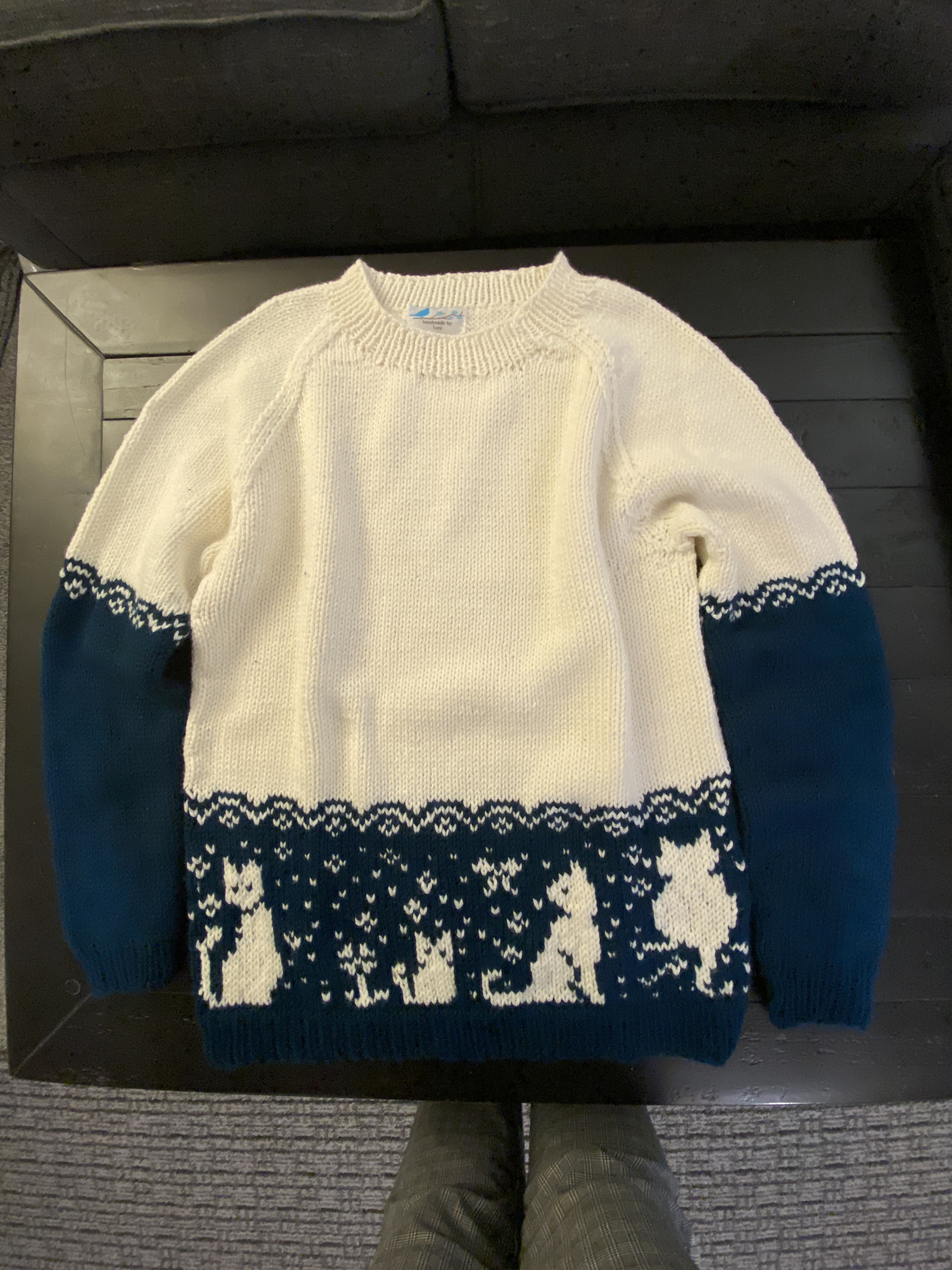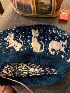 Project Notes: With a cousin who loves cats and is in need of a Christmas present, this felt like an obvious choice! I had never done a bottom up sweater that didn’t sew on the sleeves and the opportunity to pick the kitties around the base of the sweat felt too good to pass up on.