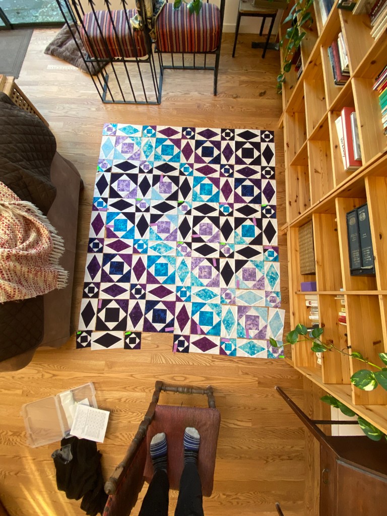 This was an incredibly satisfying step to have completed as it meant that we were past the precision sewing needed to ensure the shapes came together nicely and would be moving on to creating the quilt sandwich and quilting the entire thing together.
